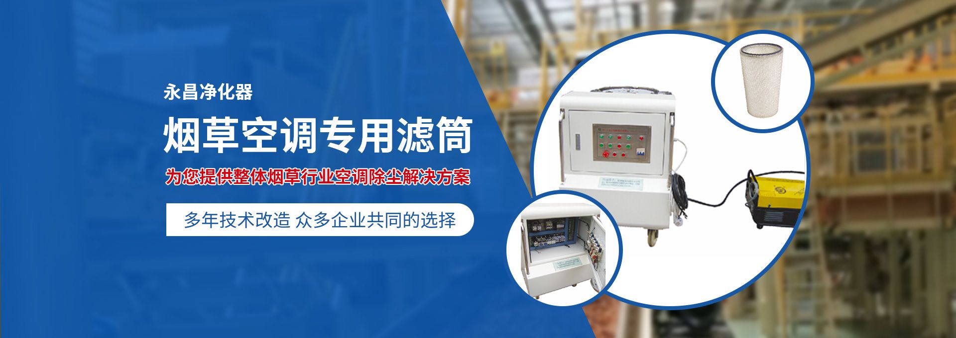 新鄉(xiāng)市永昌凈化器有限公司是生產(chǎn)煙草行業(yè)空調(diào)除塵專用濾筒的企業(yè)。注冊資金1000萬元。已通過ISO9001國際質(zhì)量管理體系認(rèn)證。對產(chǎn)品有嚴(yán)格的管理制度和售后服務(wù)。我公司以誠信、負(fù)責(zé)、守信譽(yù)、重質(zhì)量的精神所生產(chǎn)的產(chǎn)品,近幾年來在煙草行業(yè)受到廣泛應(yīng)用,并受到用戶的一致好評。 從一九九四年以來為煙廠的空調(diào)設(shè)備服務(wù)。十幾年來,我們不斷走出去請進(jìn)來學(xué)習(xí)新技術(shù)。定期到用戶那里咨詢情況:互相交流,認(rèn)真聽取寶貴意見,不斷提高產(chǎn)品質(zhì)量。從經(jīng)濟(jì)和安全,方便的角度出發(fā),根據(jù)煙廠濕度大的生產(chǎn)環(huán)境和濾筒收集到的含酸堿、氧化劑的粉塵。在空調(diào)箱工作狀態(tài)下我們頂著巨大的風(fēng)壓危險(xiǎn)在箱內(nèi)停留了幾分鐘,認(rèn)真查看濾筒工作情況,發(fā)現(xiàn)濾筒有并死狀態(tài),造成濾筒不過濾、不過風(fēng)、壓差高的現(xiàn)象。經(jīng)幾十次試驗(yàn)分析,在標(biāo)本兼治的原則下,有針對性的解決了這一問題。 我公司針對煙廠制絲、卷接包、混絲間、儲絲房、冷卻床、梗膨化等不同的生產(chǎn)環(huán)境,